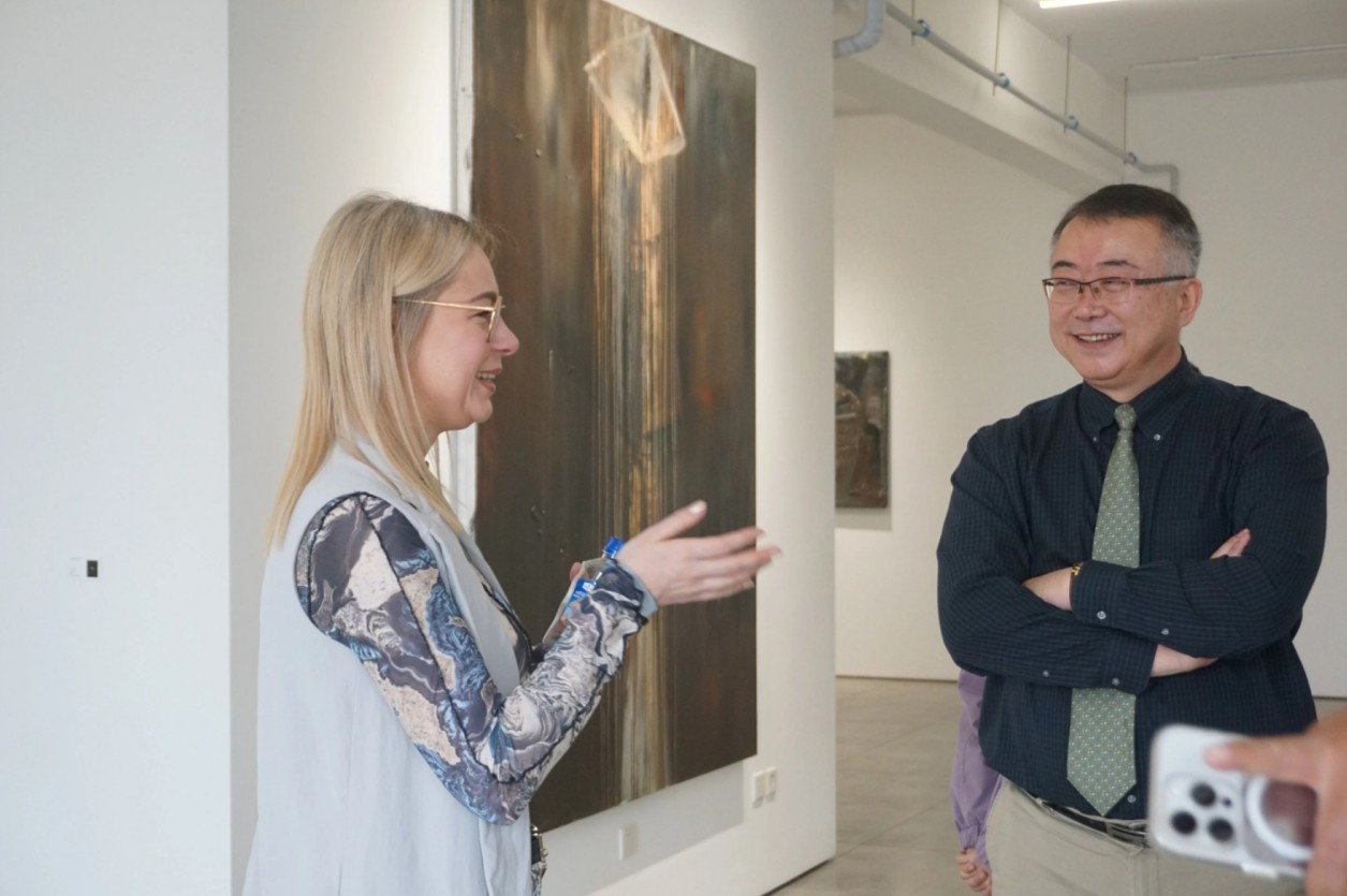 开幕现场,芭芭拉带领观众回溯每件作品创作中的印记与灵感源泉,探讨作品背后的人文哲思。当观众问起芭芭拉怎么欣赏她的画时,她是这样描述的,她把对中国传统文化与佛教的认知,人与人、与内心、与环境的对话感受,通过抽象的、精神性的想象表达出来。但创作过程中又有一定的随机性、抽象性和不确定性,因为这与她画画时的情绪有关,不一定非要像什么,而在于观看者自身的感受力、想象力和理解力。